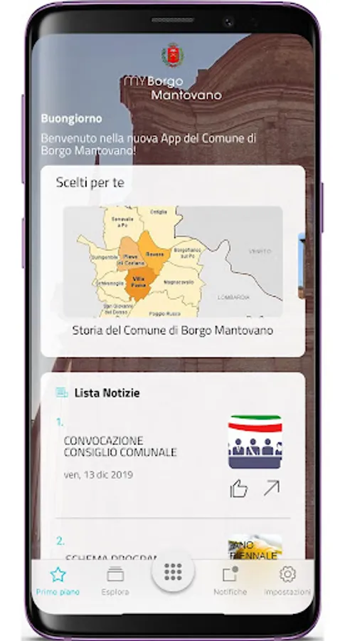 The MyBorgoMantovano application of the Municipality of Borgo Mantovano is the tool, structured for mobile technology, capable of ensuring effective, immediate and constant communication between the Administration and citizens.