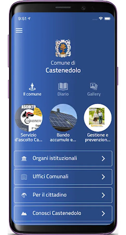 The App acts as a single access point to interact simply and easily with the services of the Municipality of Castenedolo and allows you to reduce management times and facilitate instant communication.