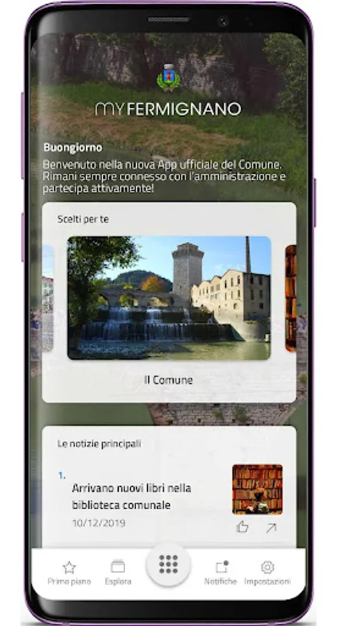 The MyFermignano application of the Municipality of Fermignano is the tool, structured for mobile technology, capable of guaranteeing effective, immediate and constant communication between the Administration and Citizens.