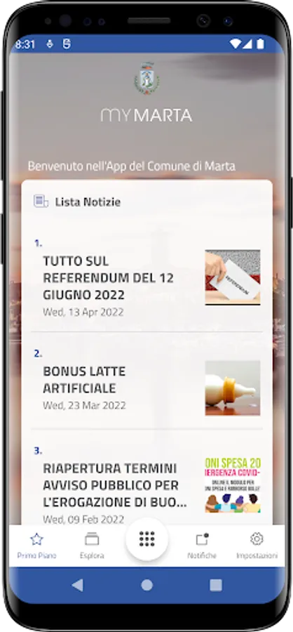 The App acts as a single access point to interact in a simple and simple way with the services of the City of Marta and allows you to reduce management times and facilitate instant communication.