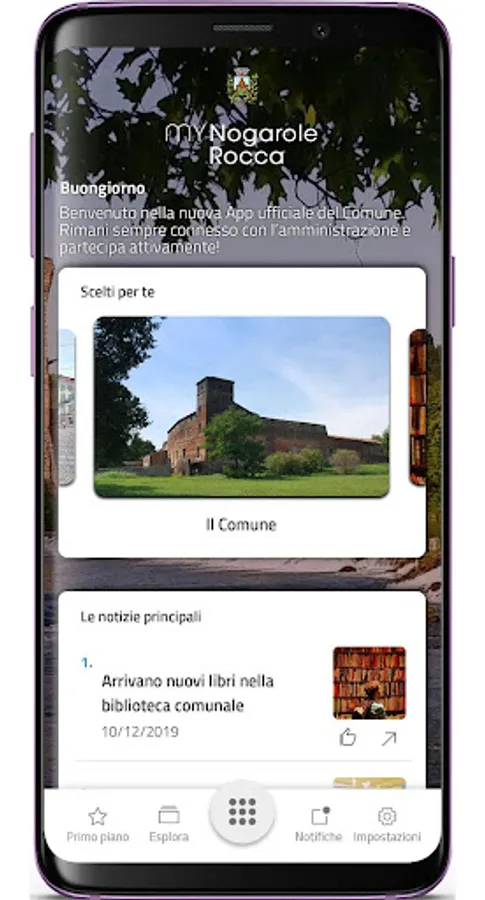 The MyNogaroleRocca application of the Municipality of Nogarole Rocca is the tool, structured for mobile technology, capable of ensuring effective, immediate and constant communication between the Administration and Citizens.