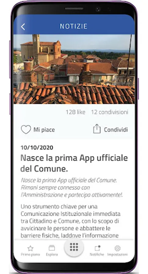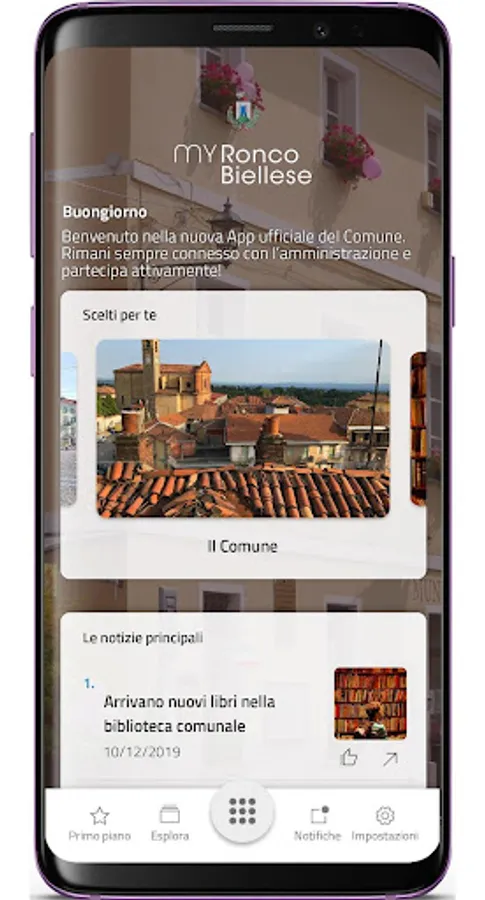 The MyRoncoBiellese application of the Municipality of Ronco Biellese is the tool, structured for mobile technology, capable of ensuring effective, immediate and constant communication between the Administration and Citizens.