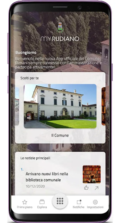 The MyRudiano application of the Municipality of Rudiano is the tool, structured for mobile technology, capable of guaranteeing effective, immediate and constant communication between the Administration and Citizens.