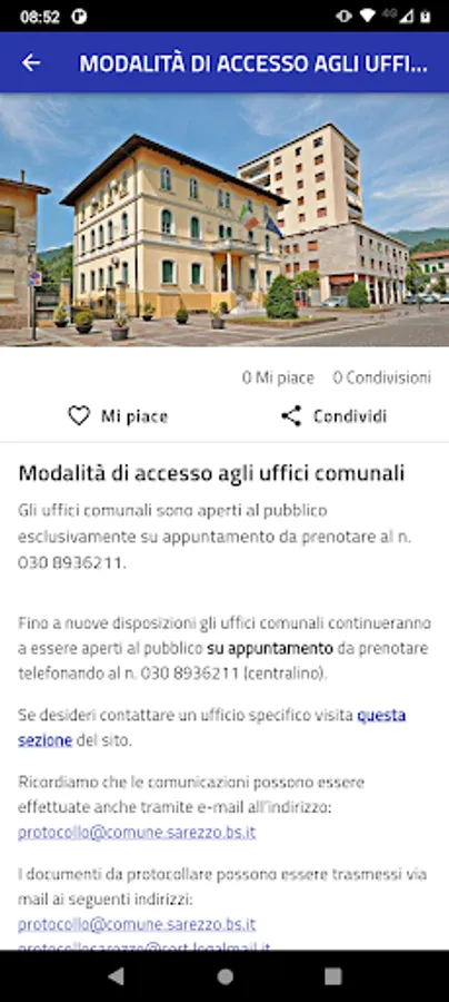 The App acts as a single access point to interact in a simple and simple way with the services of the Municipality of Sarezzo and allows you to reduce management times and facilitate instant communication.