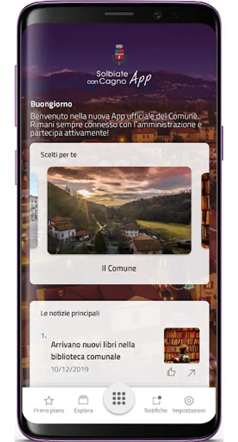 The SolbiateConCagnoApp application of the Municipality of Solbiate con Cagno is the tool, structured for mobile technology, capable of guaranteeing effective, immediate and constant communication between the Administration and Citizens.
