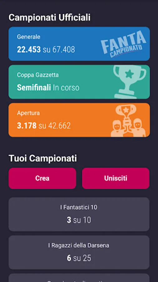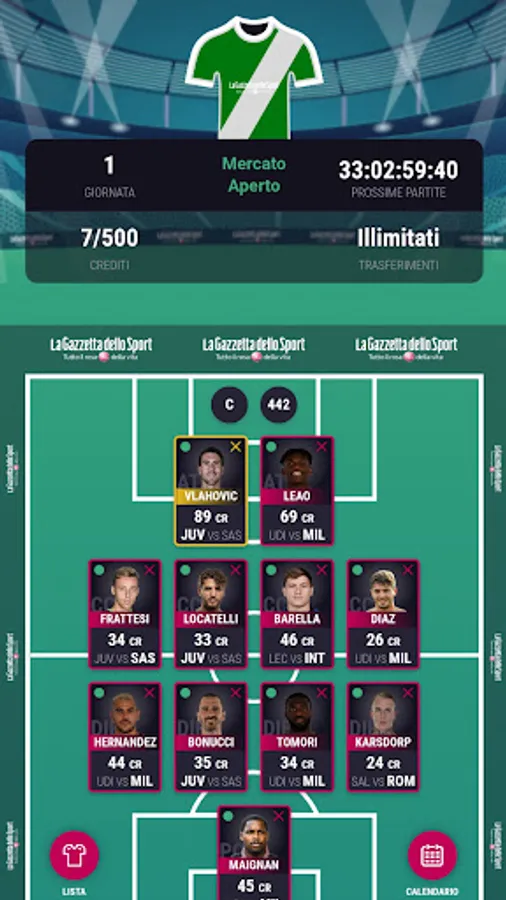 • Traditional: you have 500 Fantasymillions to create your fantasy team of 25 players. Deploy formation every day and make the market. The team's results are based on the votes given by the Gazzetta to the players, adding any bonuses and penalties. There are many ways to win: the general classification, that of the day, the official cup and many others.