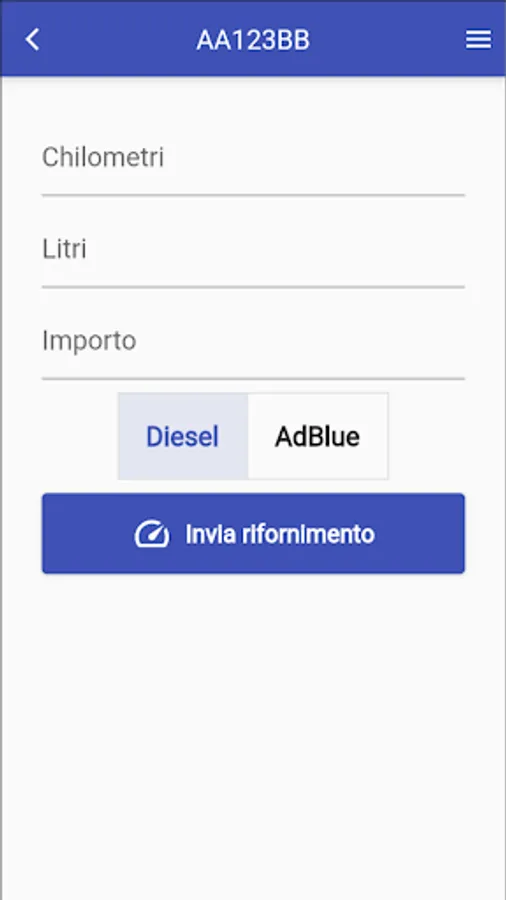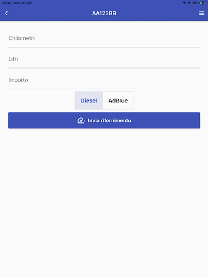 The operation is carried out in 3 simple steps: access, license plate selection, refueling data entry.