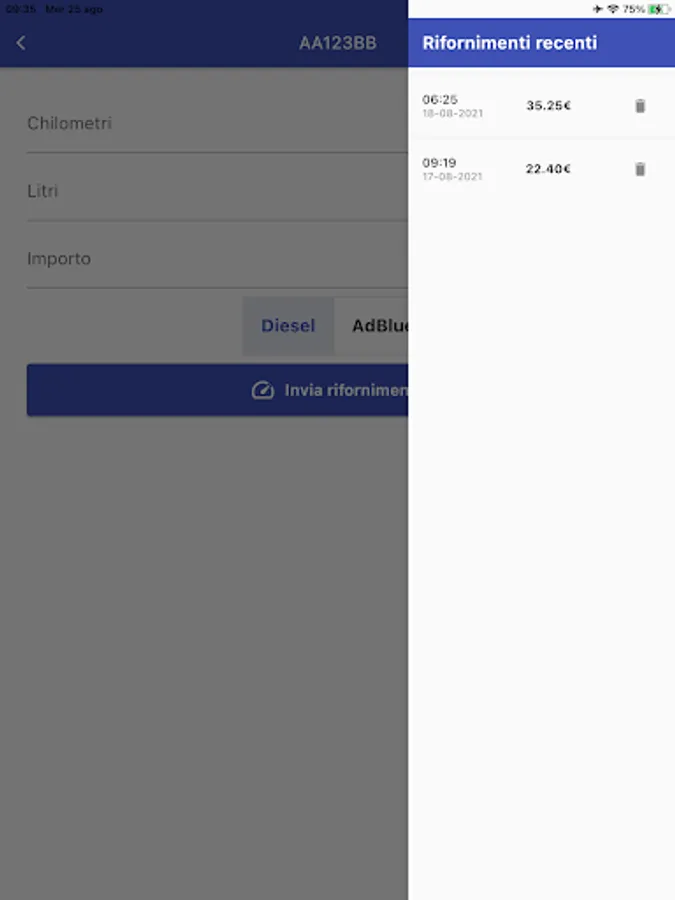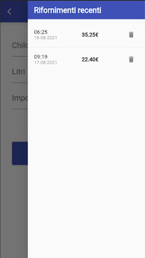 Borghi Fuel allows you to view and delete your recent refuelings, giving you maximum management flexibility.