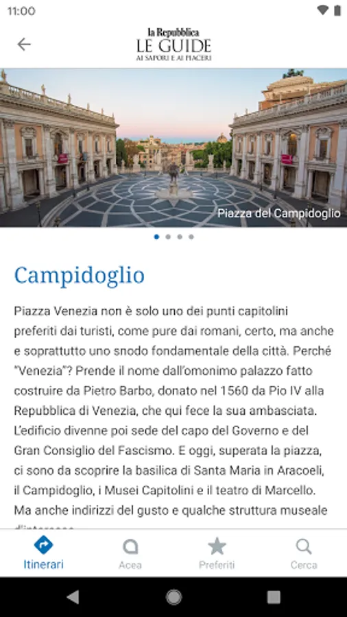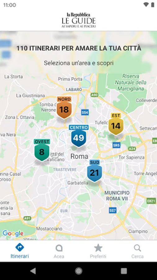 Oltre 1700 luoghi da scoprire compongono le 110 passeggiate tematiche che svelano i segreti e le bellezze di Roma dal centro alle periferie, tra musei, monumenti e piazze, ma anche consigli per impreziosire i propri itinerari con indirizzi dello shopping e pause del gusto, grazie alle centinaia di segnalazioni di ristoranti, trattorie, pizzerie e botteghe della città.