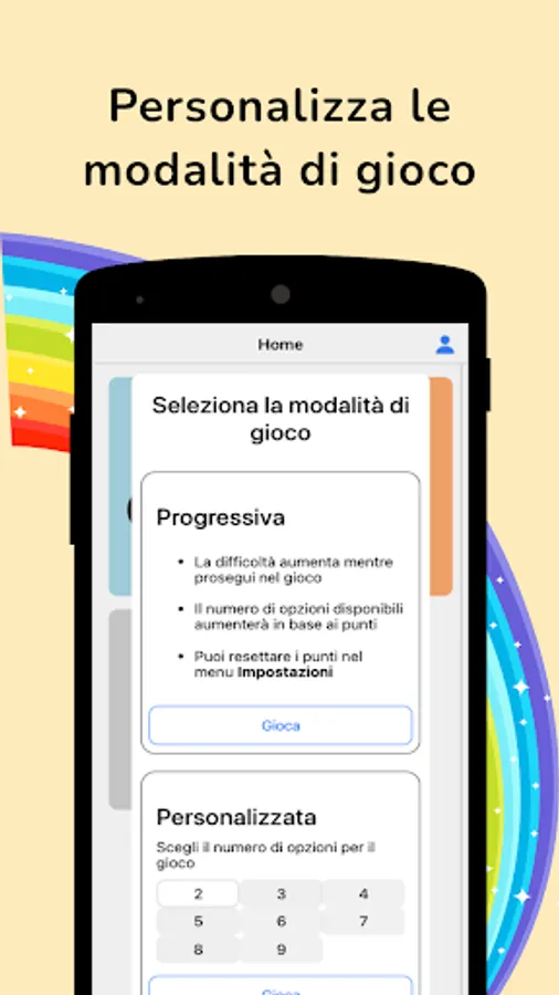 Personalizzazione: ogni gioco può essere personalizzato a seconda delle esigenze.