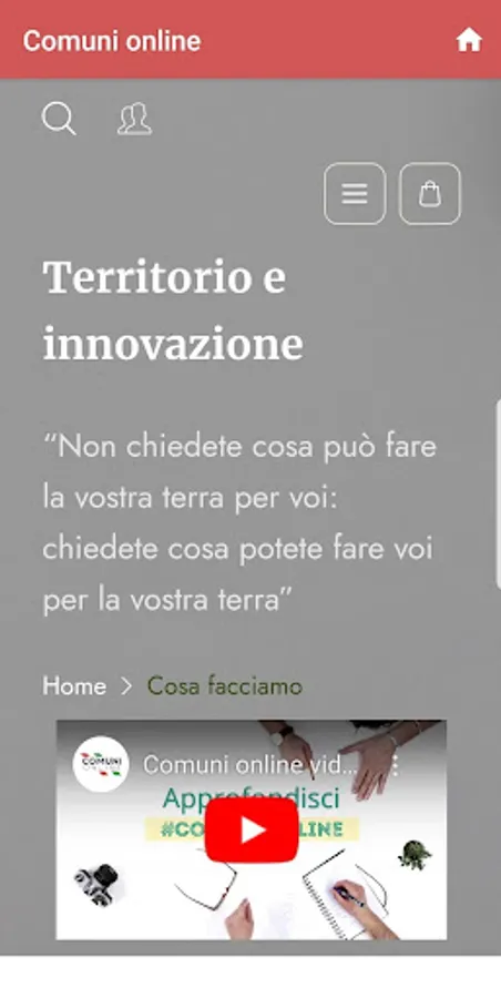 Comuni online is the reference portal for tourists and citizens, with the aim of making the presence of tourists more "SMART" and informed, making them know the territory and simplifying their stay. A digital and interactive showcase that presents events, news, activities and places of interest in the area. The portal aims to be the "Tour operator" of reference for tourists in the area, making everything easier, through an access to geolocate inside an interactive map. The mission is to ensure that tourists can have simplified their stay, promoting all the often unknown territorial beauties and features.