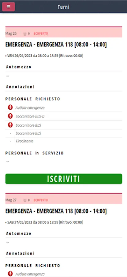 - displays the information of the assigned services and allows you to interact with the status of the service
