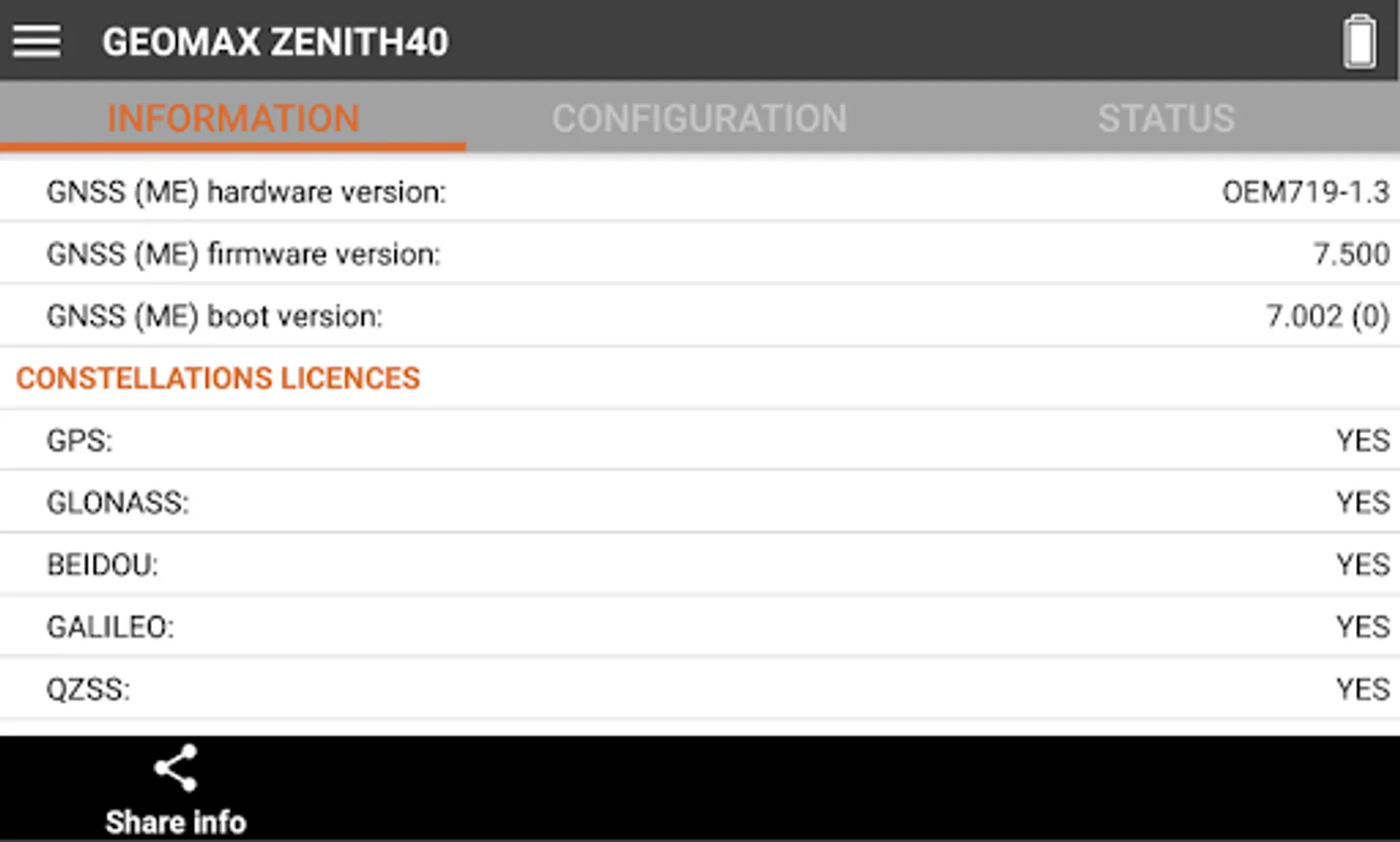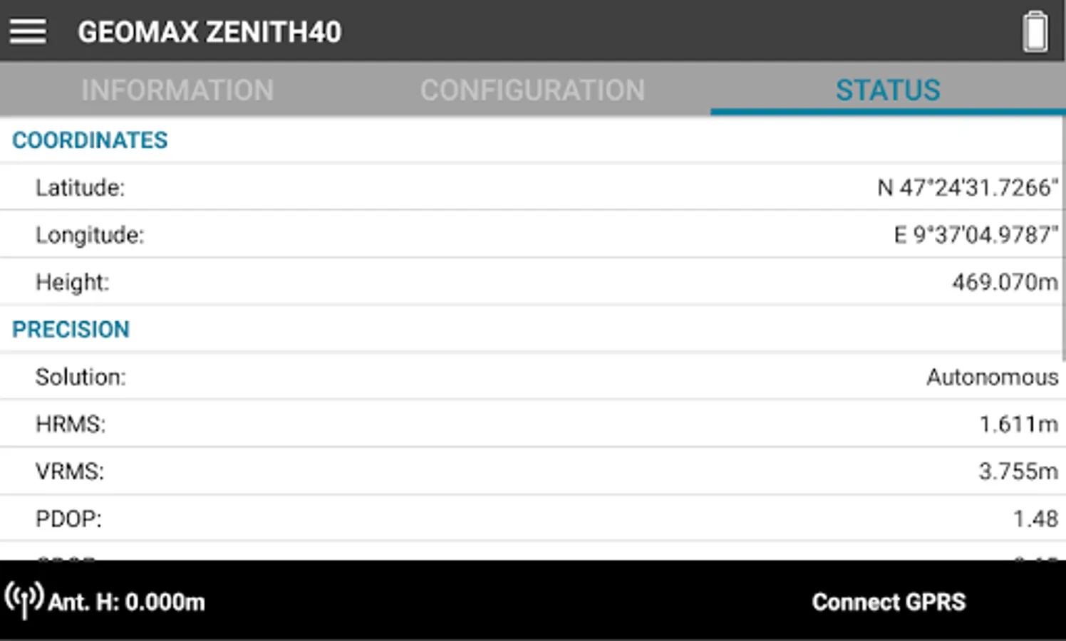 The Zenith Manager helps to configure your Zenith 06/15/16/25/25 Pro/40 GNSS antenna! Connect to your zenith receiver with the QR-iConnect functionality. Zenith Manager displays all the information you need to know about your device and allows you to configure the instrument by means of an easy wizard. You can also save your most common configurations to upload them directly on your GeoMax zenith receiver!