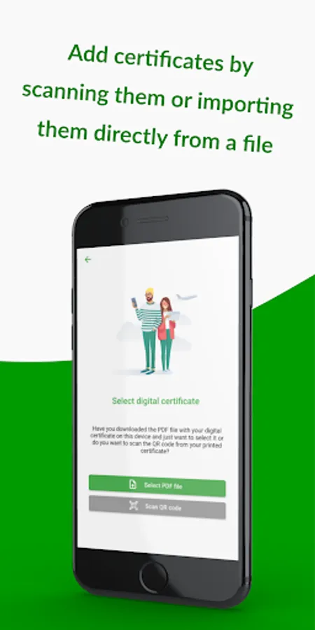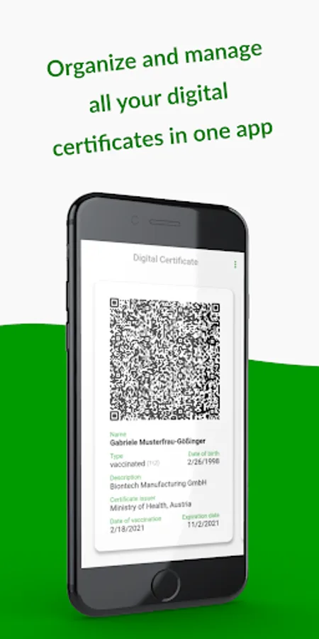 Organize and manage the digital certificates of you and your family. The app allows you to add, arrange and delete as many digital certificates as you want. This way you can keep track of them.