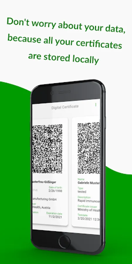 Do you have to look for your Green Pass (digital certificate) every time you need it? Do you have no idea where to save it? Then this is the app for you. It allows you to have your Green Pass quickly and easily at hand at any time. Your certificates are encrypted and stored locally on your device. So don't waste valuable time searching for them anymore!