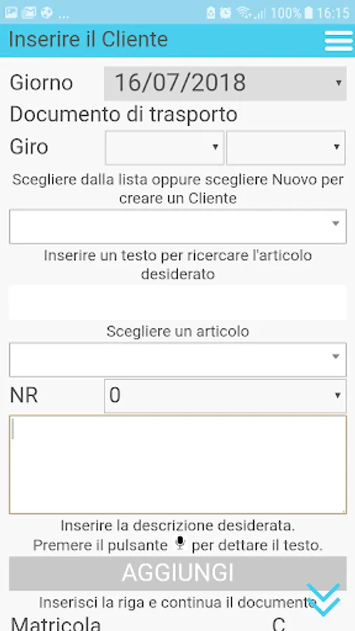 With this new application you can manage the goods on the vehicle inventory waste loads. Make the DDT or delivery bills by printing of PDF or on a Bluetooth printer.
