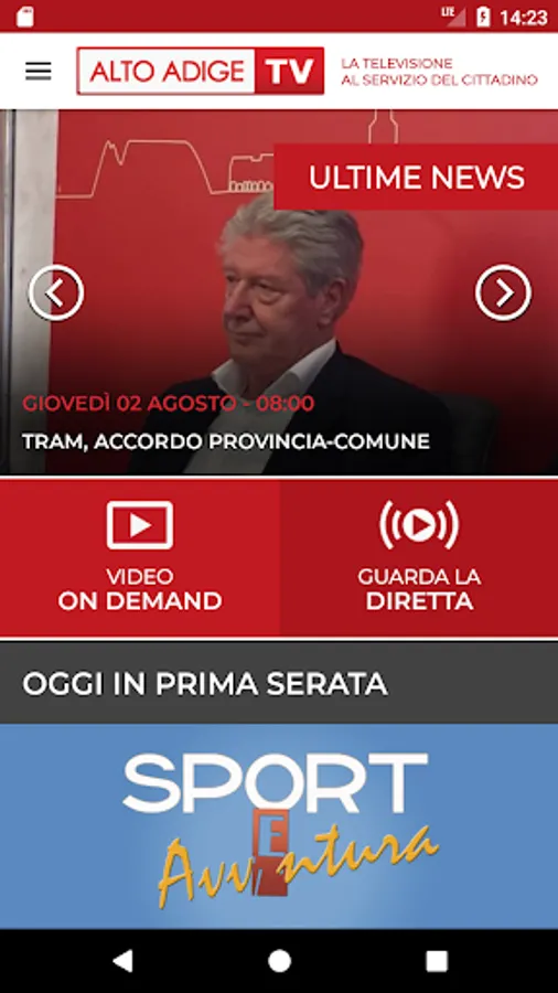 Access the LiveTV and VideoOnDemand section and watch the live channel, the Newscasts, the Press Review and all the broadcasts of AltoAdige TV for free.