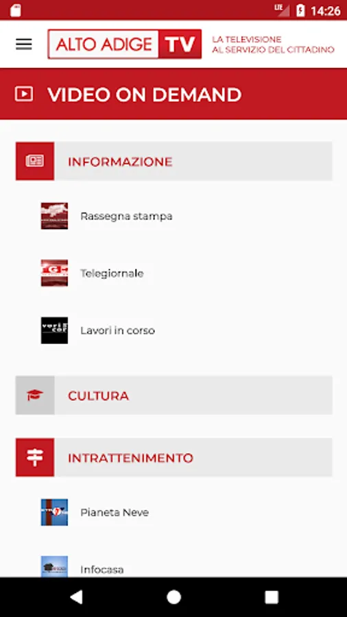 - VideoOnDemand: video archive of all AltoAdige TV broadcasts