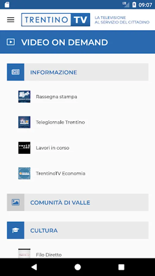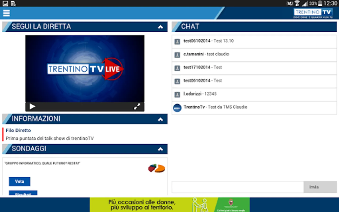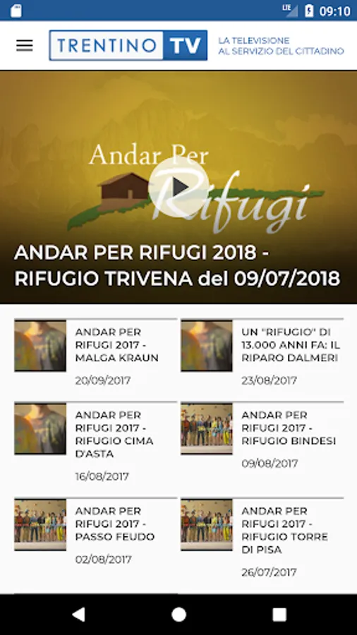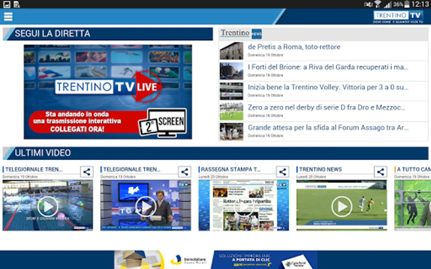 - LiveTV: streaming of the live broadcast of the Trentino TV channel