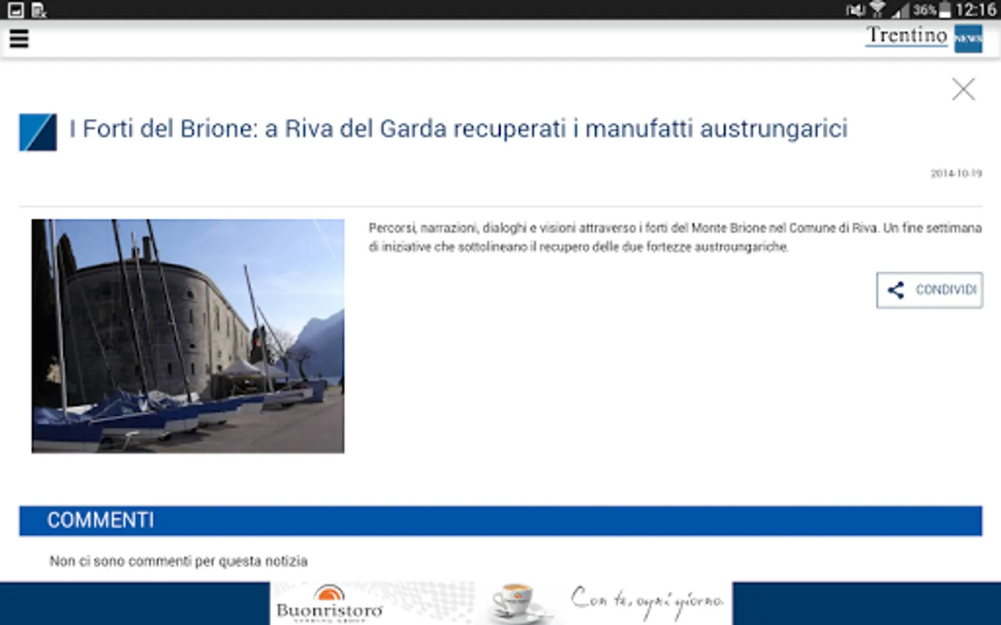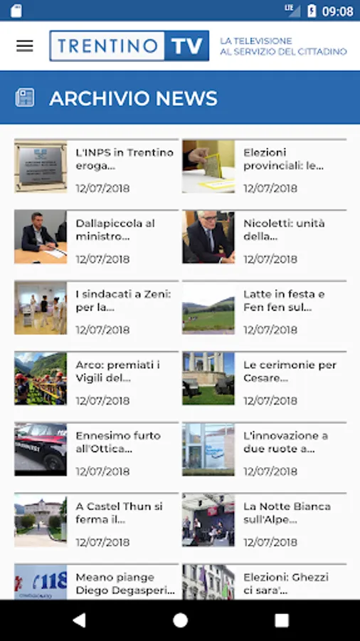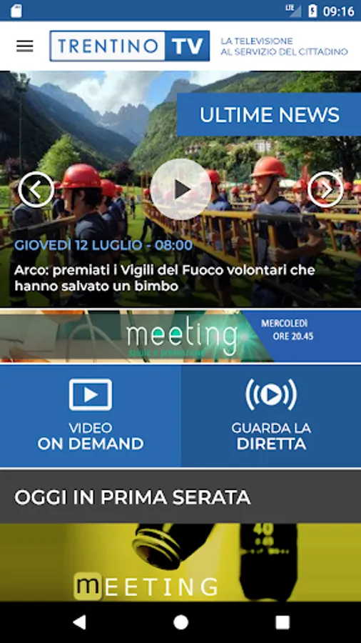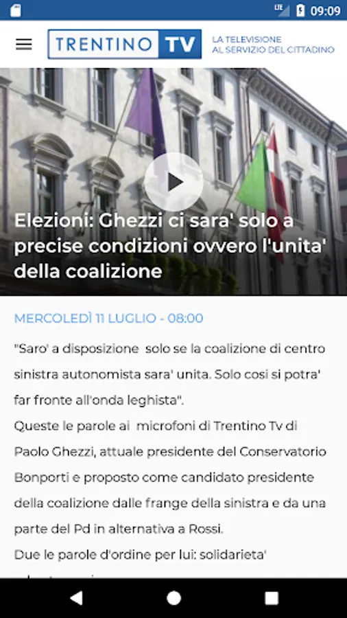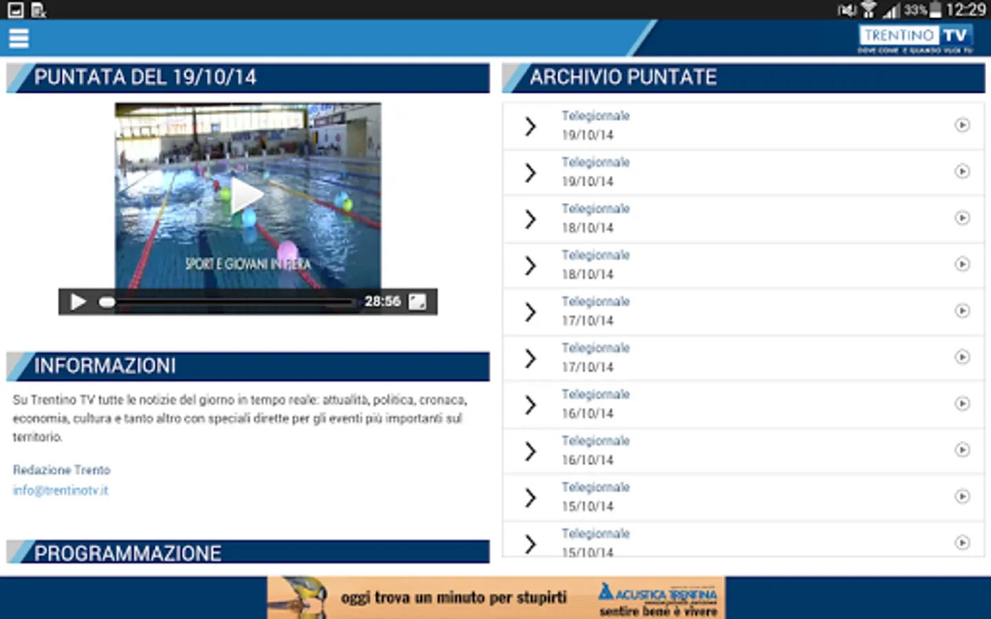 - LiveTV: streaming of the live broadcast of the Trentino TV channel