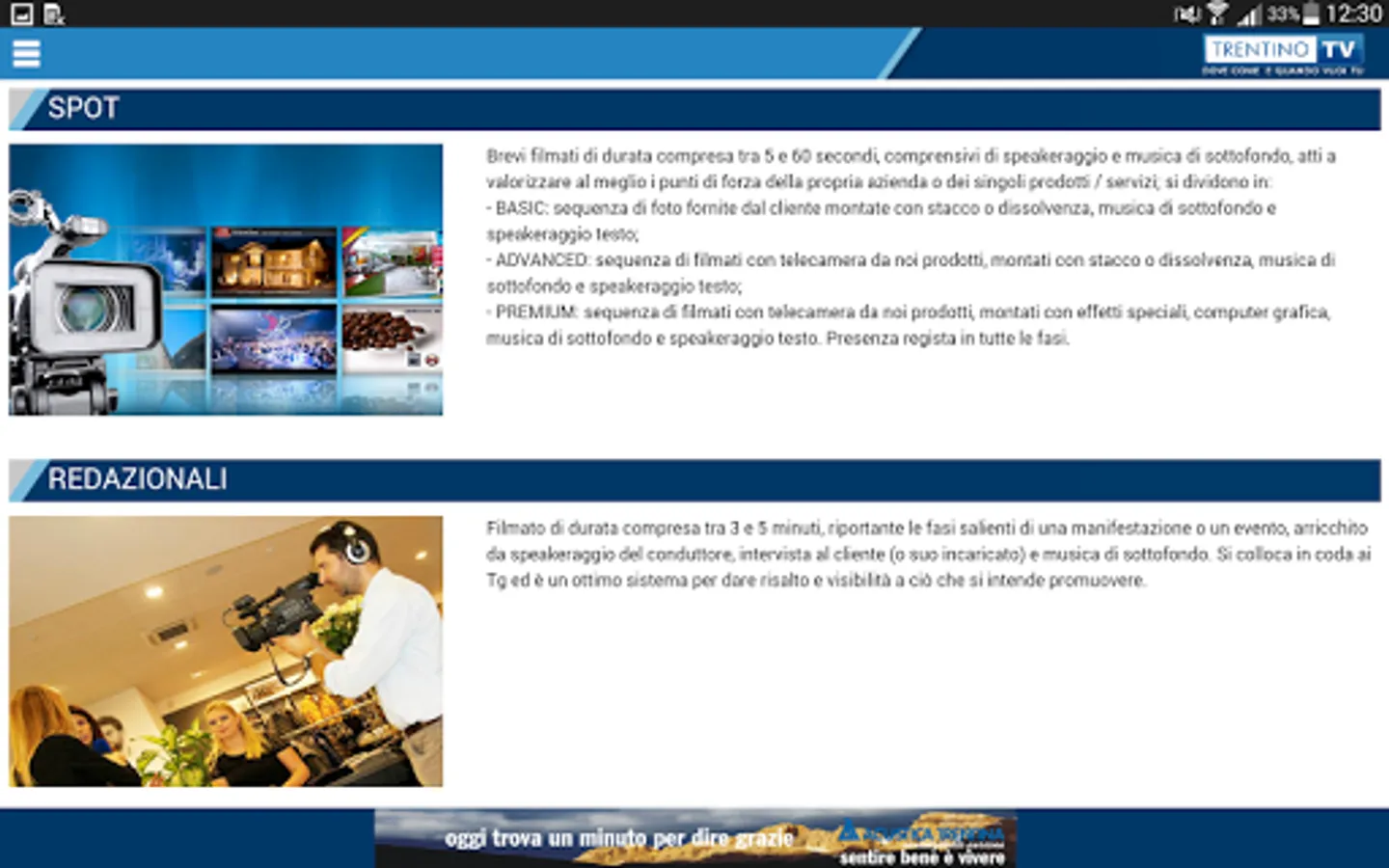 - VideoOnDemand: video archive of all Trentino TV broadcasts