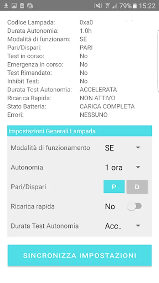 With just a couple of commands it is possible to set a wide range of settings of an emergency device, such as autonomy, flow, operational mode (SE-SA-PS), functional and autonomy test durations, naming, position of the lamp inside a plant and so on. On the other hand, when interacting with a lighting device you can easily turn on or off features like the light sensor, the autodimming mode or the dynamic presence detector. Or you can set the brightness value of a light source with just a few clicks.