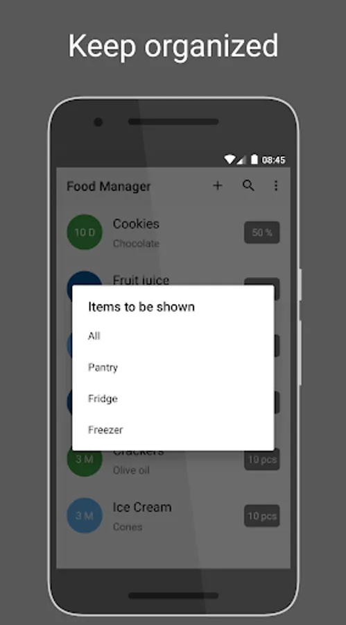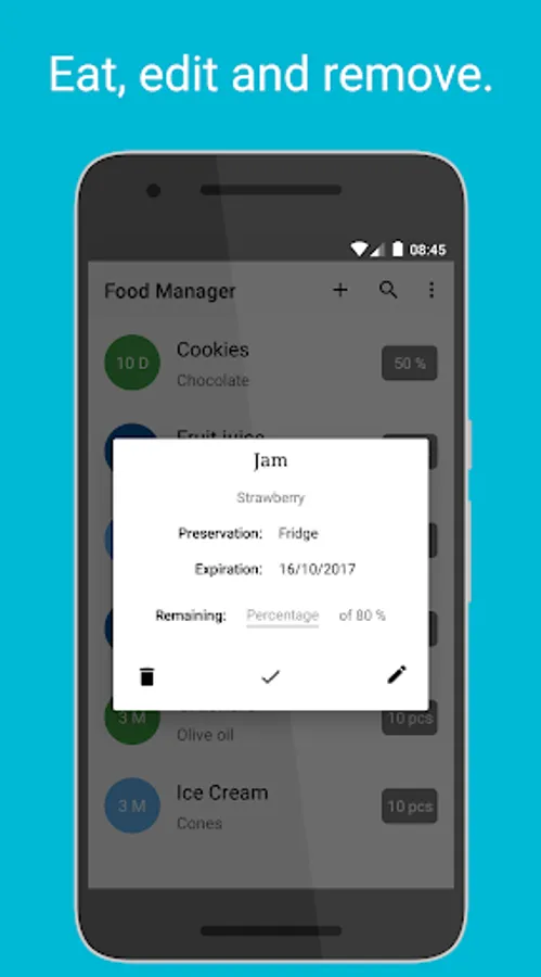 For each food item is available a card, that summarize its details, from which the following operations can be executed: