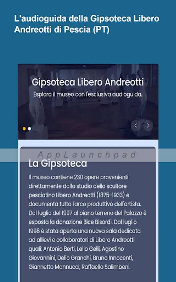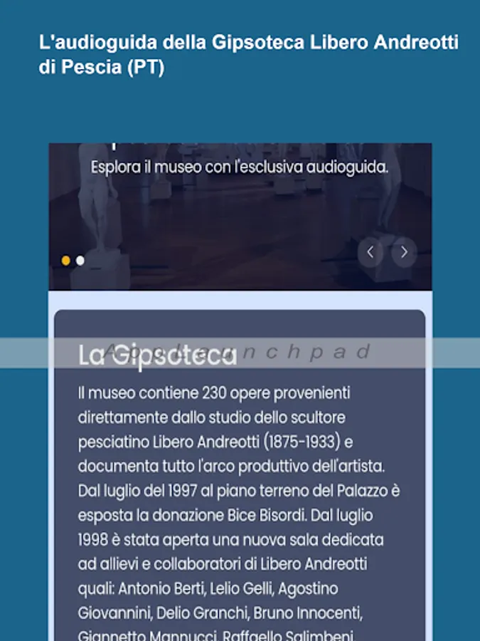 Audio guide and text guide of the Libero Andreotti Gipsoteca in Pescia (PT)