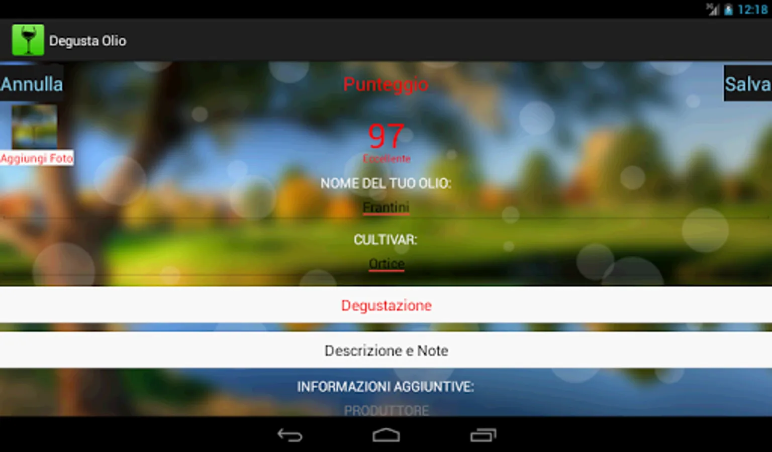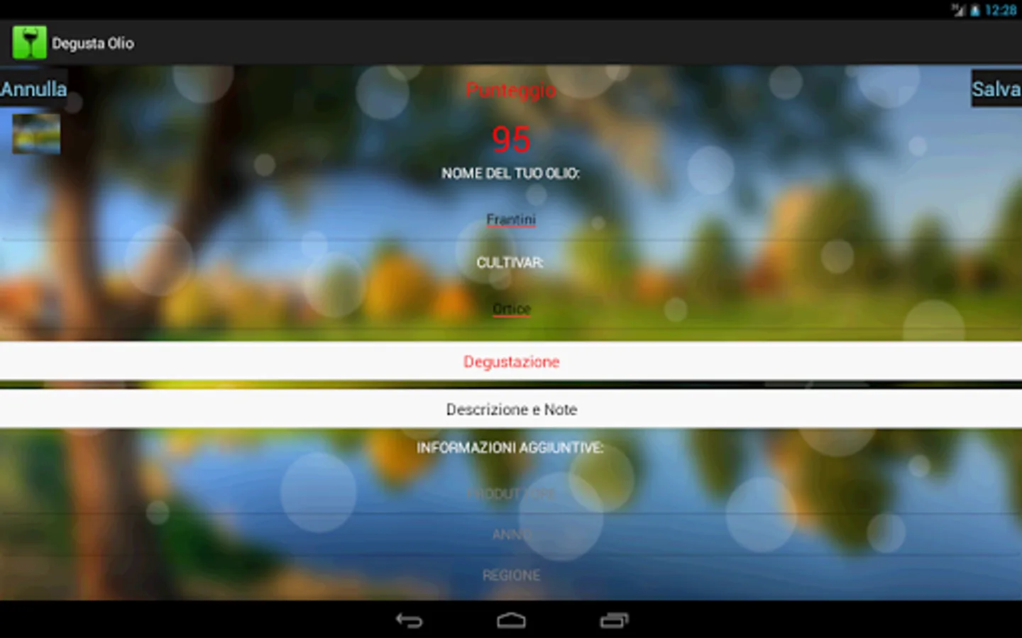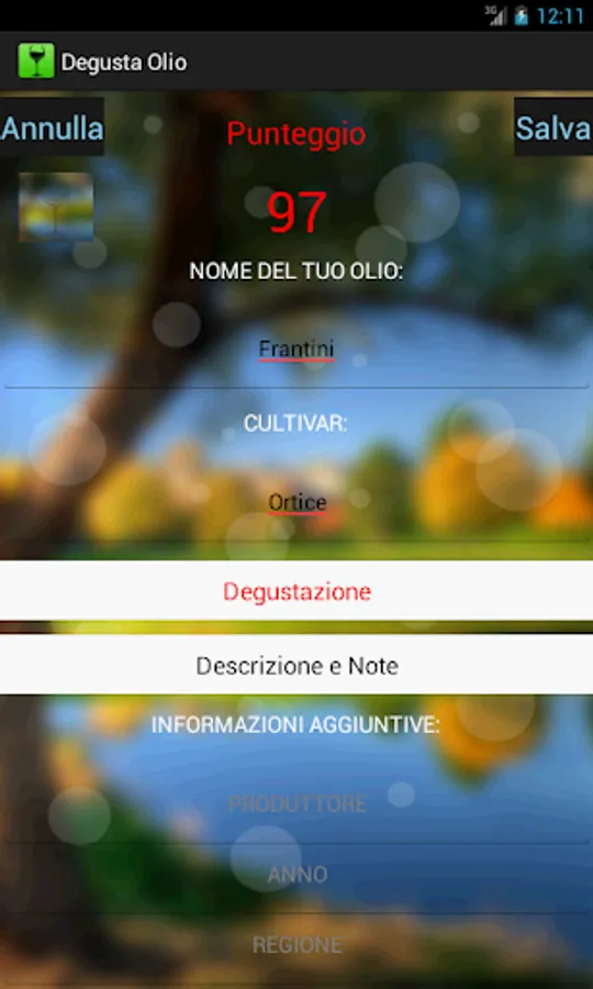 You can insert and fill in a highly technical and detailed your oils, to always have with you the complete database of oils tasted.