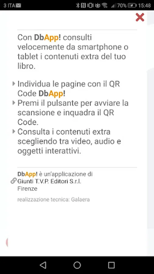 find the pages with QR Code DbApp !; press the button to start scanning and frame the QR Code. Check the extra content by choosing between video, audio and interactive objects.