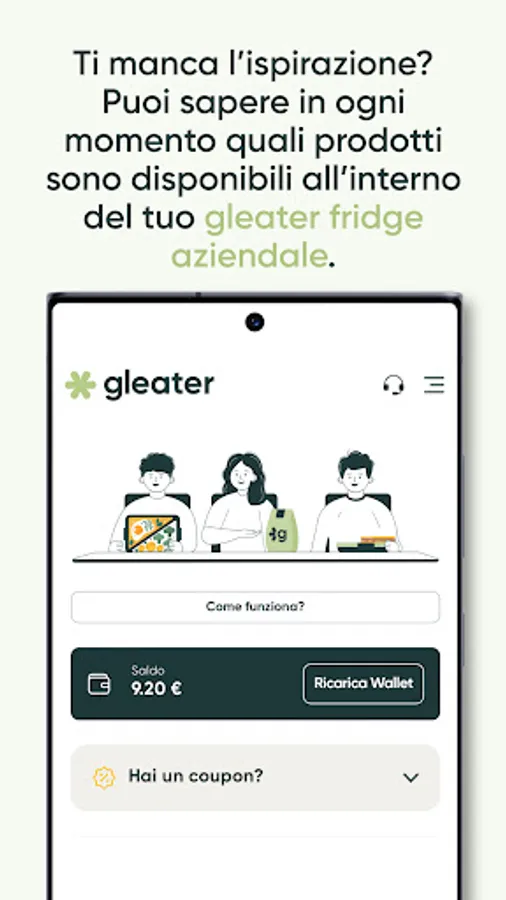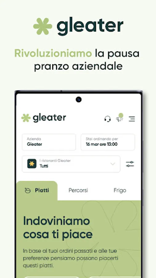 gleater allows each employee to always have fresh and quality food available, as well as to consult good food recommendations, thanks to the support of professionals in the sector.