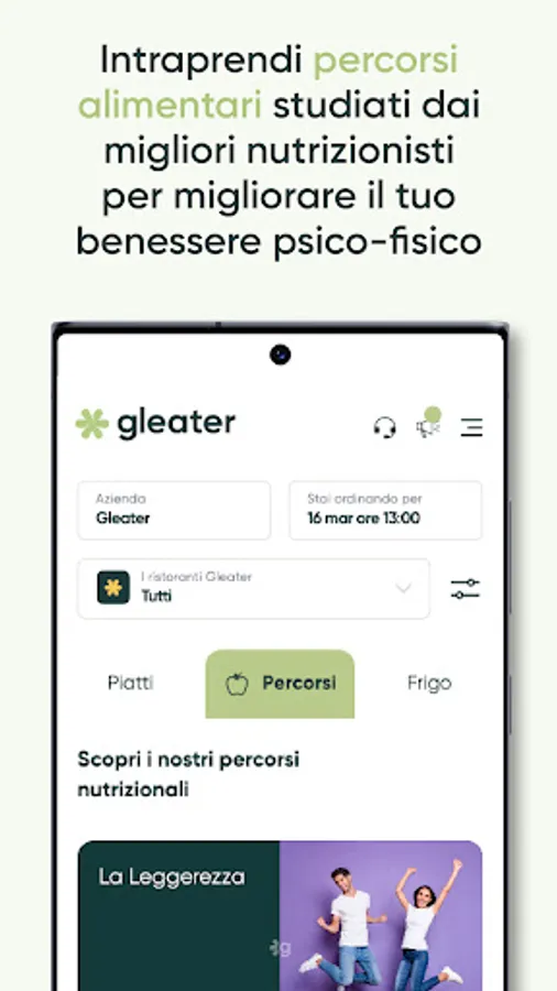 We are what we eat and, for this reason, gleater is the ideal partner for those companies that put the well-being of their employees first, aware that nutrition plays a fundamental role.