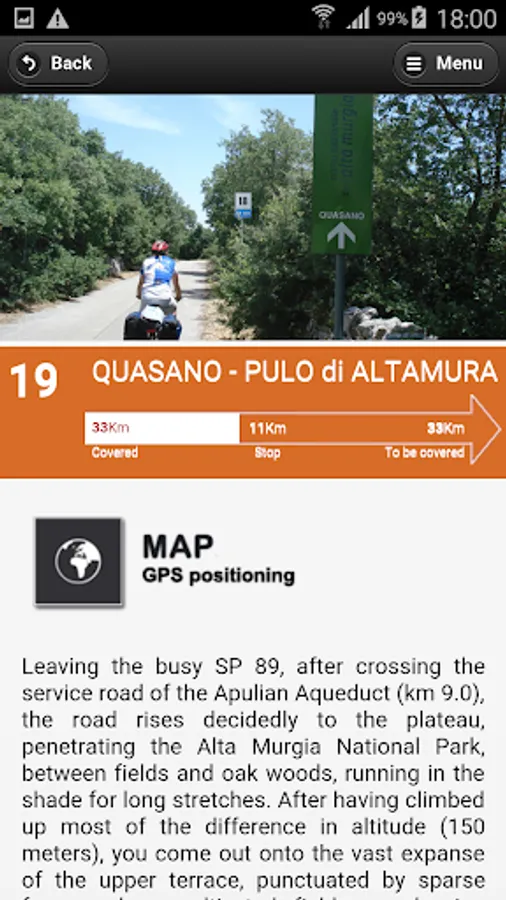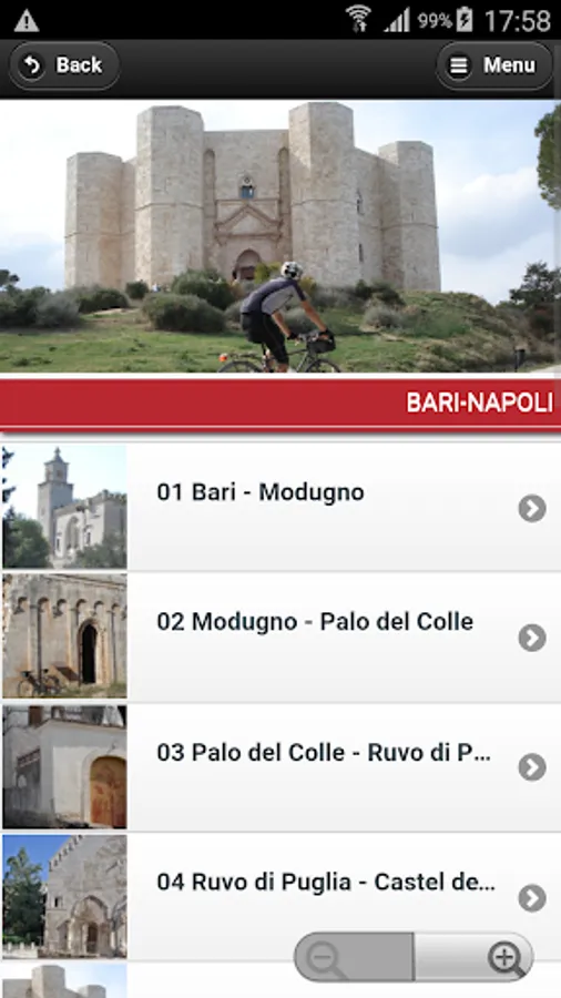 The itinerary described, representing the Bicitalia route No.10, shows the best route in existence today for reaching the capital of the Campania region as well as Matera starting from Bari, and for discovering from the height of the bicycle seat some roads as secondary as possible, and the landscapes typical of the Murgia and the southern Apennines.