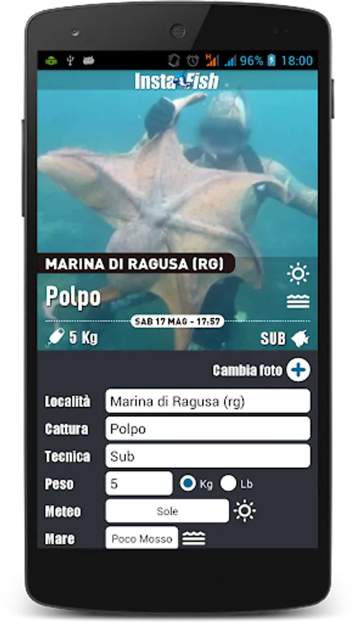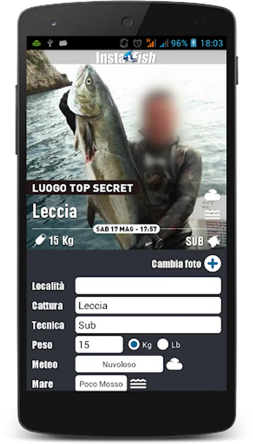 InstaFish, applying to all fishing enthusiasts (amateur and professional) that allows you to share photos of their catch with friends.