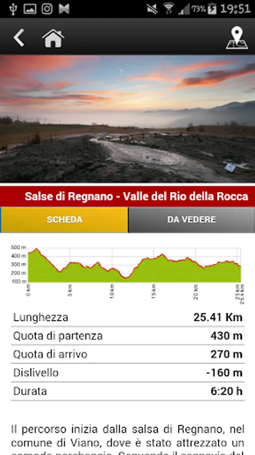 The hiking path Trail of mud volcanoes is unique both for tourism and scientific, geological, botanical and landscape. The six municipalities of Modena and Reggio Emilia Viano, Scandiano, Castellarano, Sassuolo, Fiorano and Maranello have in fact signed an agreement for the protection, promotion and enhancement of the area of Emilia mud volcanoes system on their territory and whose trail of mud volcanoes is the element of direct hiking-territorial use.