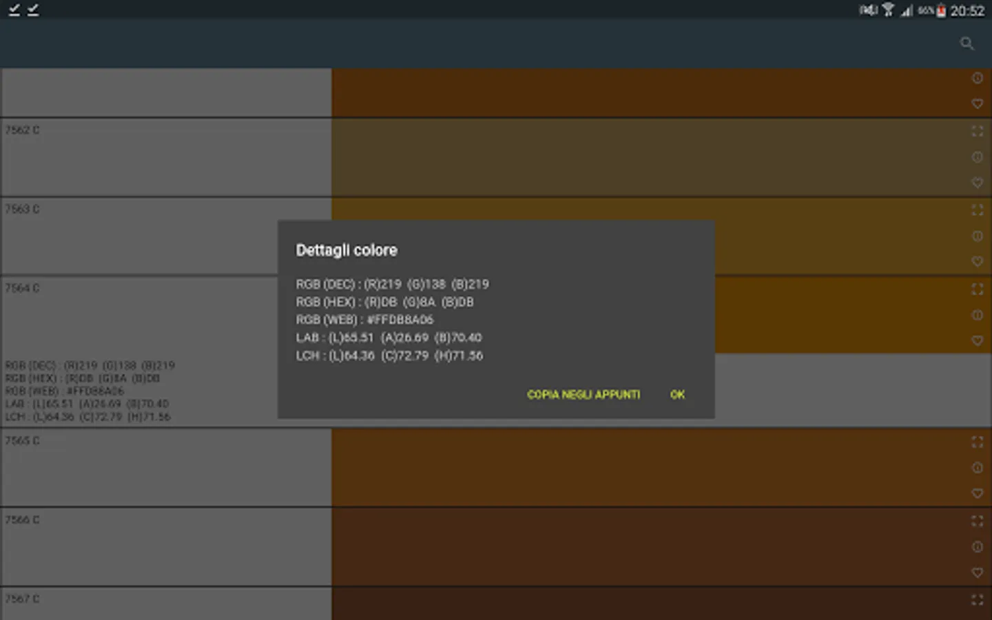 The application doesn't substitute the hardcopies of the RAL and PANTONE colors, but is only for support purpose.