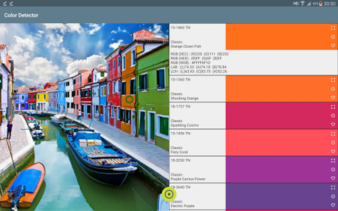 Use the most advanced color tool app of the market, recognize colors from images and browse the full list of the RAL and PANTONE colors with code and description. At the moment this app is the best color detector available for Android. This is the only tool that has the ability to calibrate the screen to have the maximum color fidelity as possible.