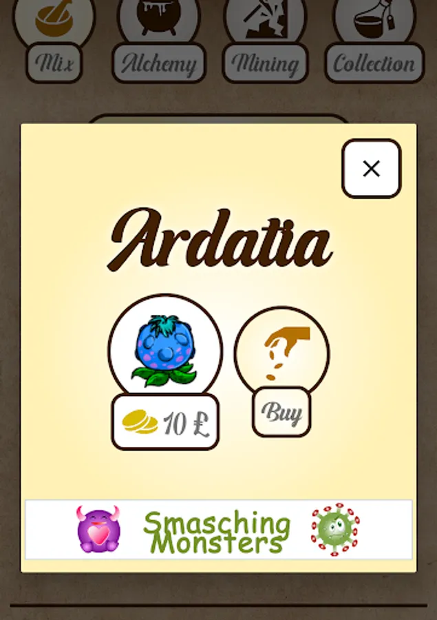 If you need money for buy ingredients, you can go in the Mining page and tap to find a coin, or you can also sell the Potion you have created!