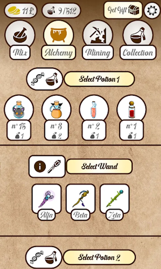 Now go to the Alchemy! Choose two potion and one wand to create a new potion!