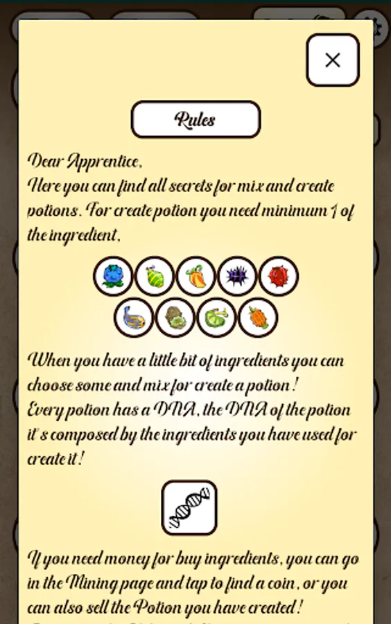 Every potion has a DNA, the DNA of the potion it's composed by the ingredients you have used for create it!