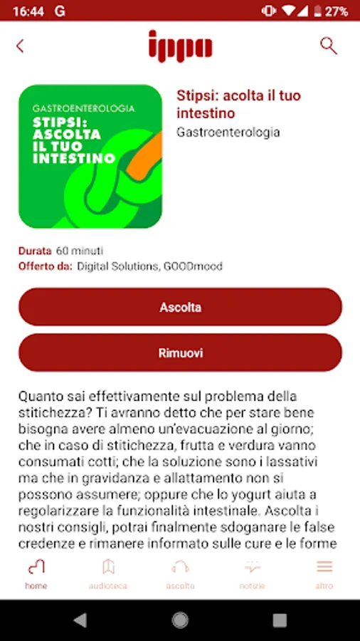 IPPO is your health audio library with which you can download and listen (even offline) for free health tips to take care of yourself!