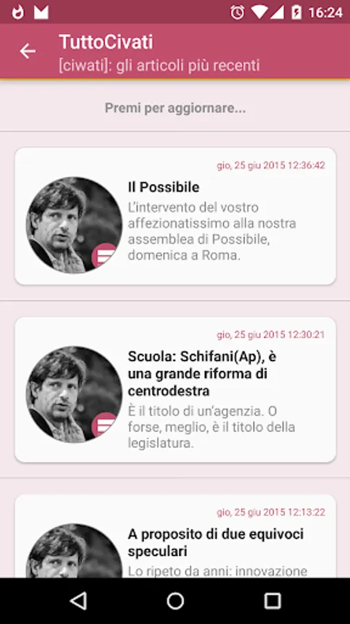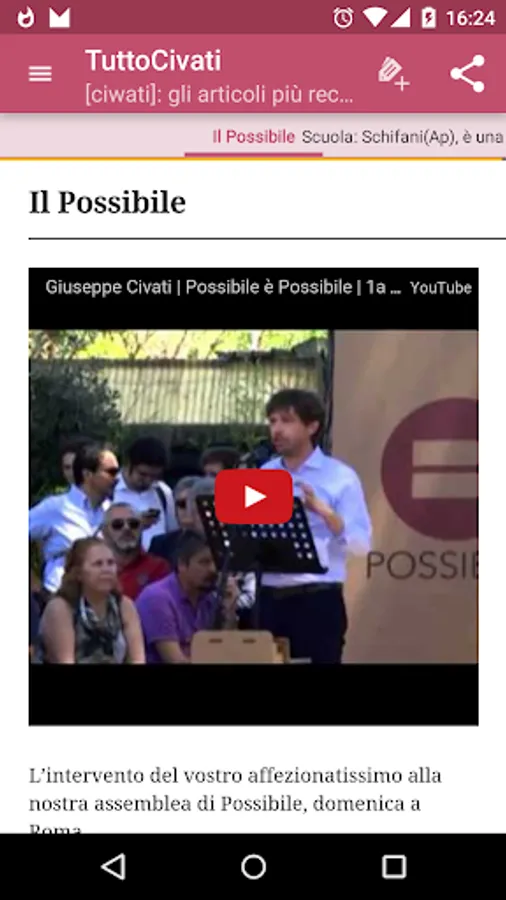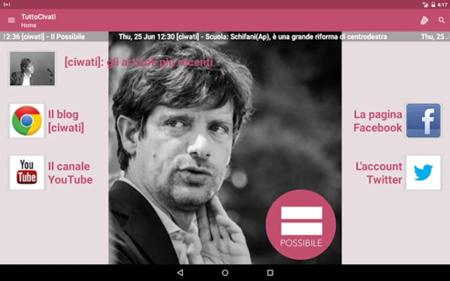 The application allows access from smartphones and tablets to social channels and the blog of Pippo Civati, ciwati.it.