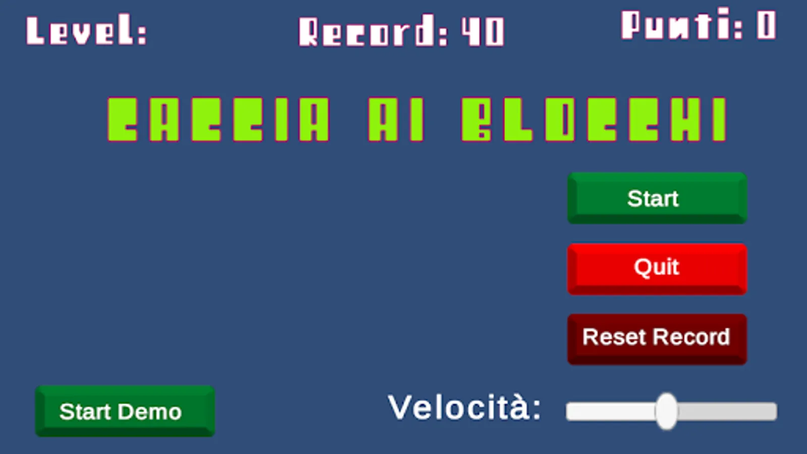 Test your speed and your reflexes by destroying blocks on three levels. You can select the speed of the ball, but the points you get for each eliminated block is proportional to the speed of the ball: faster, harder and more points, slower, easier but less points.