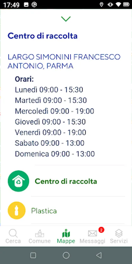 You will have access to the maps of the collection points in the area and the dedicated counters, to the collection calendar. Use the app to book the collection of your bulky waste or make environmental reports.