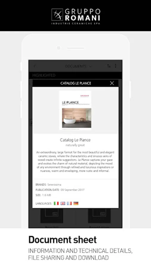 This new official Gruppo Romani App is designed for customers, professionals and designers, with constant updates on all the latest news, even when you are offline. Direct access to specific content from all brands allows you to discover the material universe of finishes and ceramic products from Serenissima, Cir, Cercom, Cerasarda and Isla. Here you can find news, events, competitions, seminars and a new reserved area.