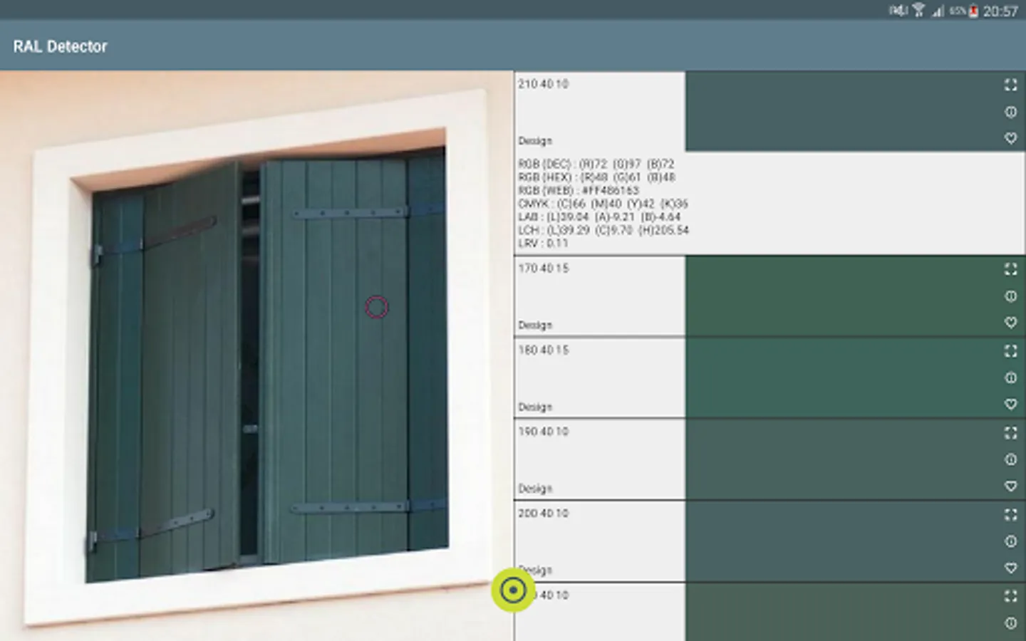 Use the most advanced color tool app of the market, recognize colors from images and browse the full list of the RAL colors with code and description. At the moment this app is the best color detector available for Android. This is the only tool that has the ability to calibrate the screen to have the maximum color fidelity as possible.
