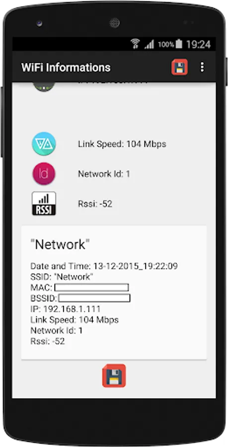This application provide you detailed information about your WiFi connection, and it allows you to save the details in your telephone.