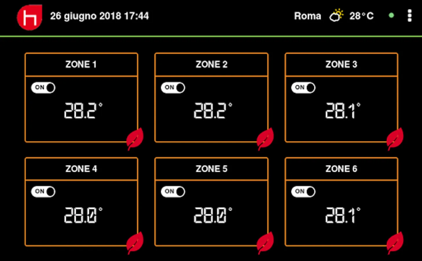 Information regarding temperature and humidity is transmitted to the control unit via sensors or room thermostats. Using the sensors the adjustment of each zone is made directly from the HTOUCH 7 panel, using the thermostats instead the regulation can be done both locally and from the HTOUCH 7 panel.