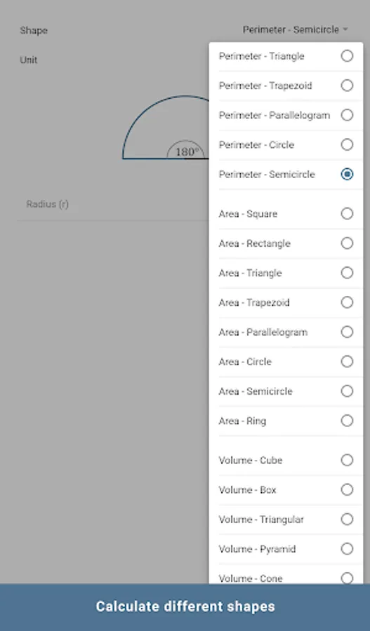 AnyShape lets you calculate the perimeter, area and volume of many different shapes with ease, visualising the object you want to calculate and letting you copy the result with a single tap.