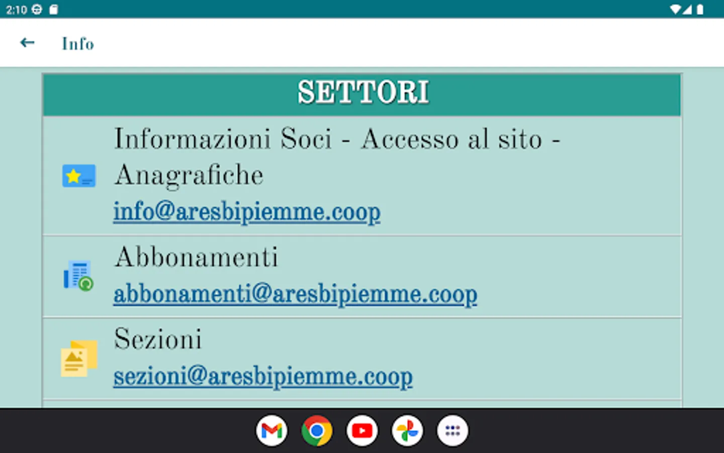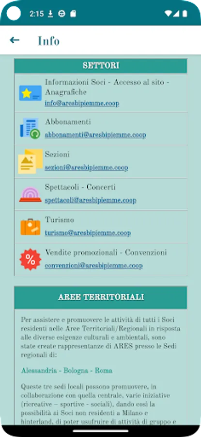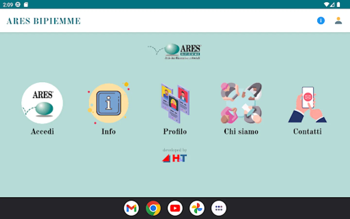 The Ares Bipiemme APP was created to present the recreational and social activities and its services.